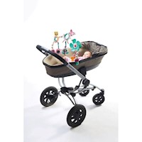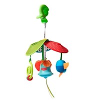 Arco de actividades con juguetes colgantes, texturas y colores, para estimular al bebé mientras está en el suelo.