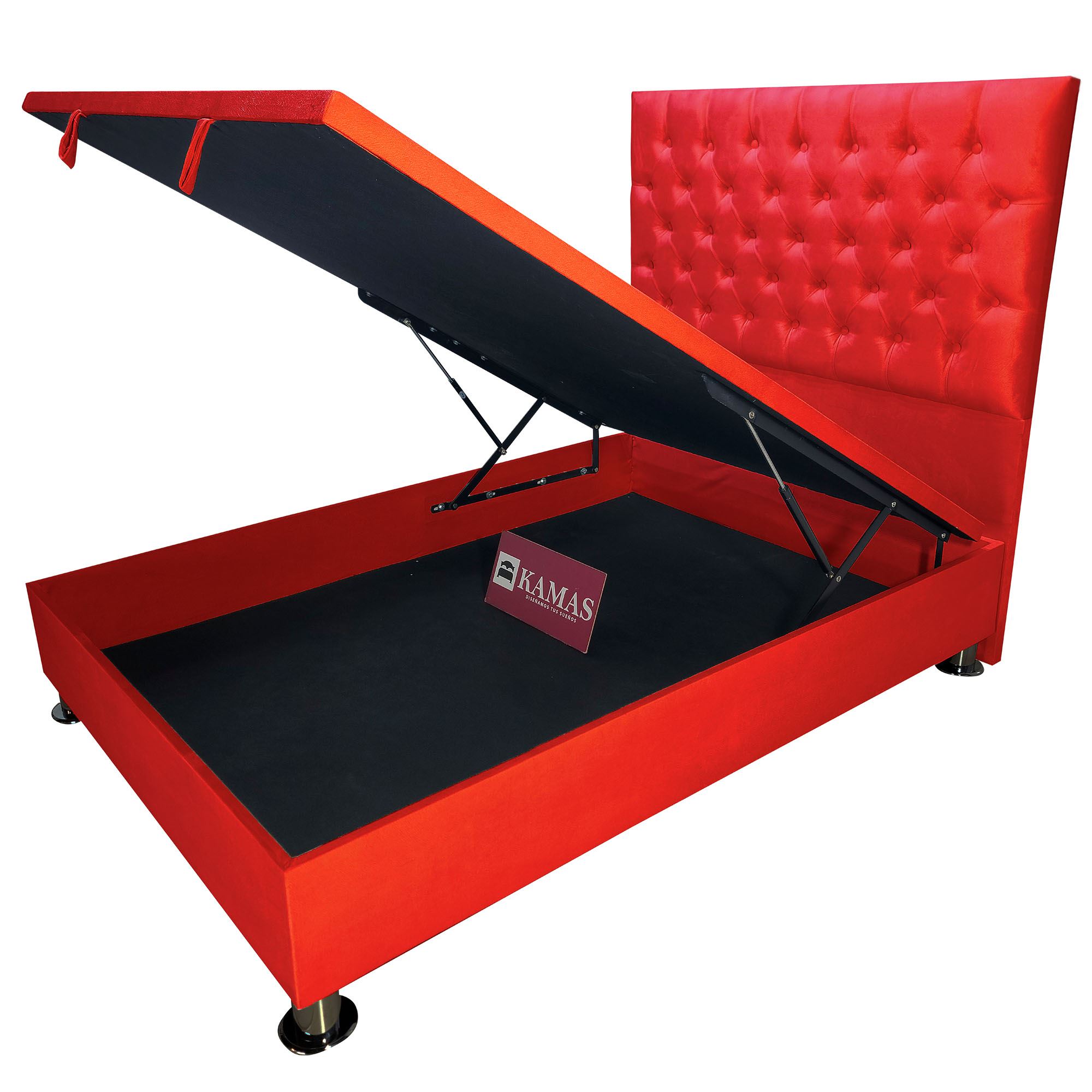 BASE KAMAS 2 PLAZAS CON DOS CAJONES LATERALES COLOR ROJO