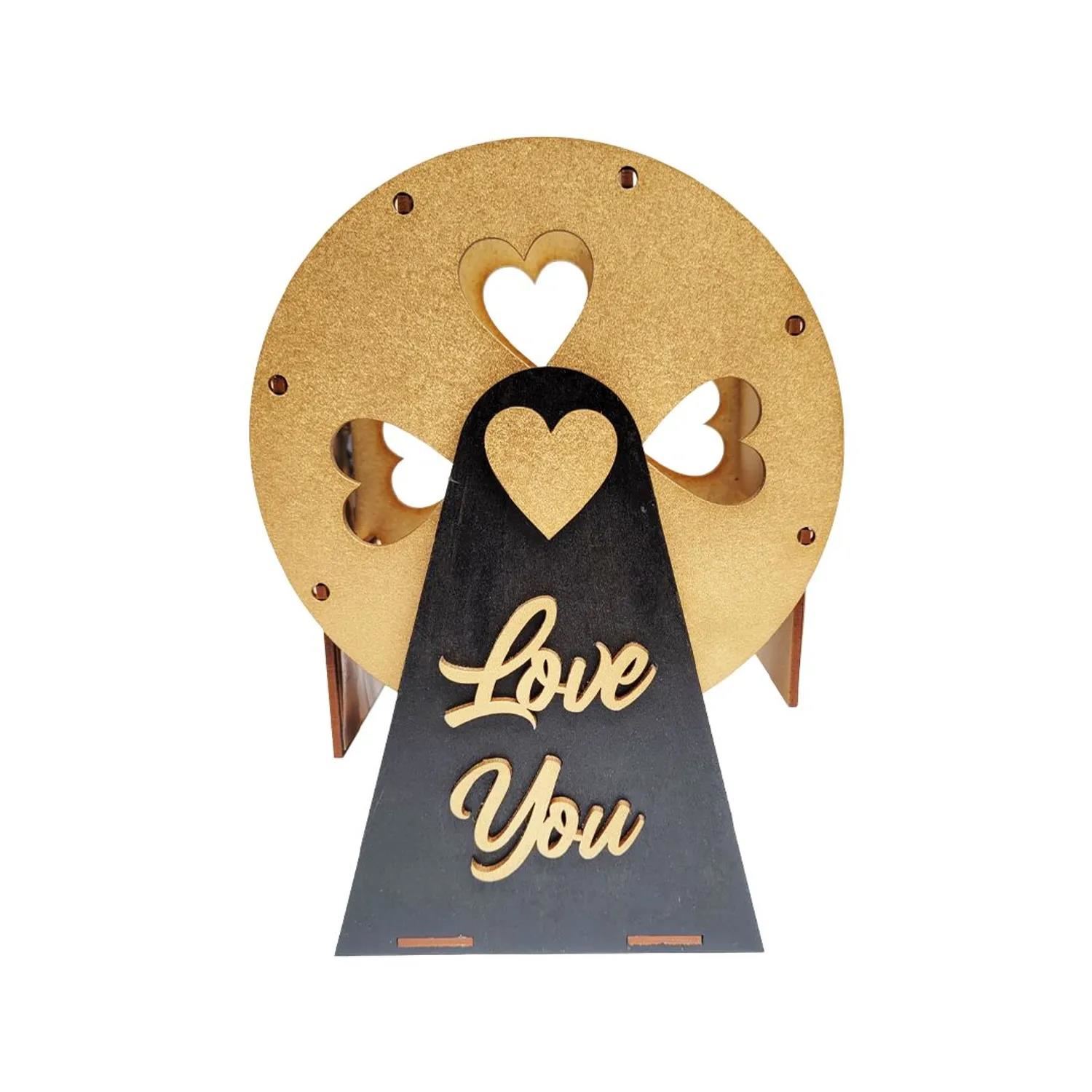 Tiene escrita la frase “I LOVE YOU” adornado de Un corazón blanco realizados en MDF, lo que le da un aspecto elegante y personalizado.