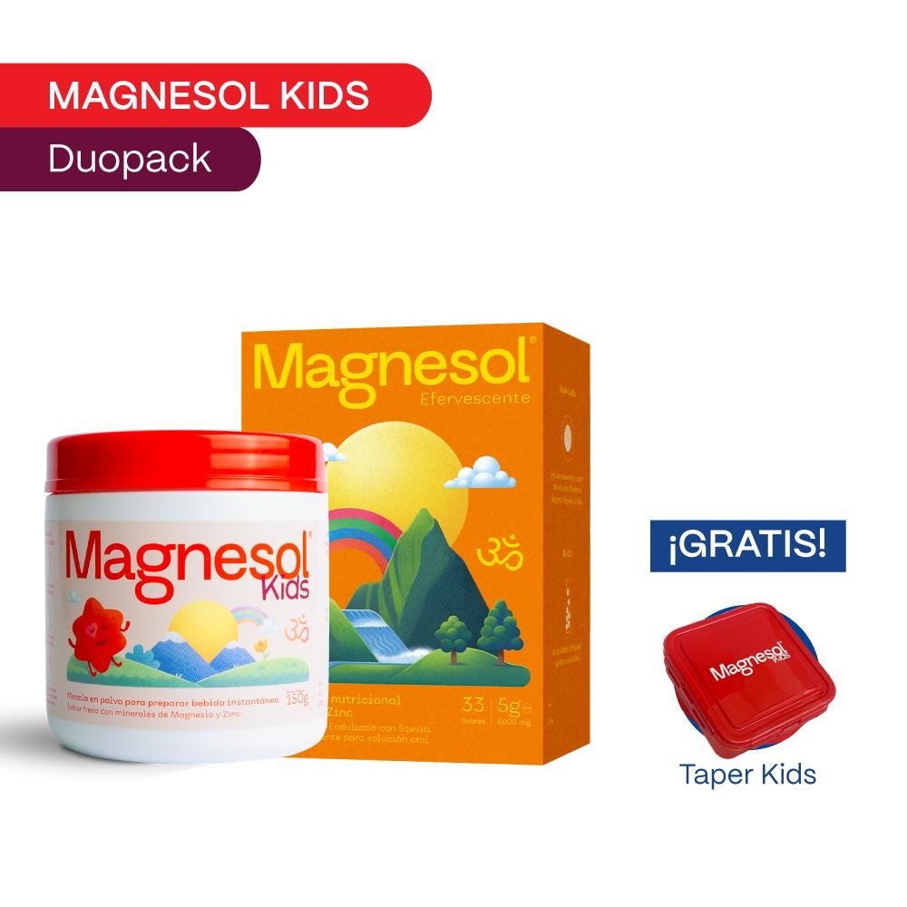 Magnesol kids es una mezcla en polvo para consumo como bebida instantánea, con sabor a fresa que proporciona magnesio y zinc para el crecimimiento y desarrollo de los niños.Precauciones y Advertencias: Es importante consultar con un médico antes de tomar MAGNESOL KIDS si el niño tiene alguna condición médica. No recomendado en pacientes con insuficiencia renal.