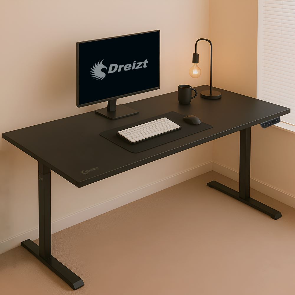 Su tablero MDF de 120x60 cm en acabado Rovere ofrece el espacio necesario para monitores y accesorios, mientras que su estructura de acero soporta hasta 200 kg con estabilidad total. Mejora tu postura y tu productividad con solo un toque.