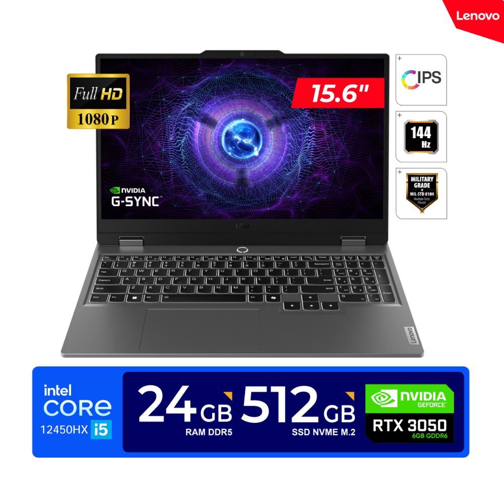 LAPTOP LENOVO LOQ 15IAX9/ 15.6'' FHD (1920 x 1080) - IPS/ Core i5-12450H, 4.40GHz, 8 Núcleos/ 8GB (DDR5 - 4800 MHz) 512GB SSD/ RTX 3050 (6GB - GDRR6)/ FREEDOS