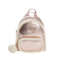 Llévate esta bonita mochila de piel sintética con forma redondeada en tu próximo mandado. Cuenta con un brillo metálico, cierre con cremallera alrededor, correas ajustables y un bolsillo delantero con cierre de presión y logotipo grabado.